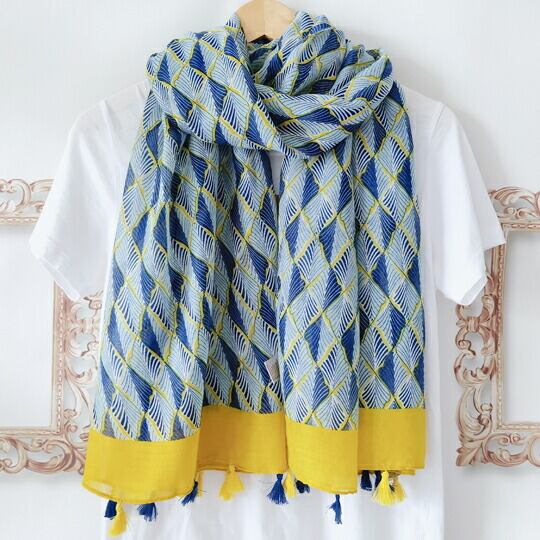 爽やかさと上品さを纏った幾何学的デザインのストール!