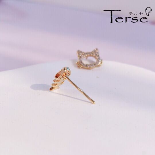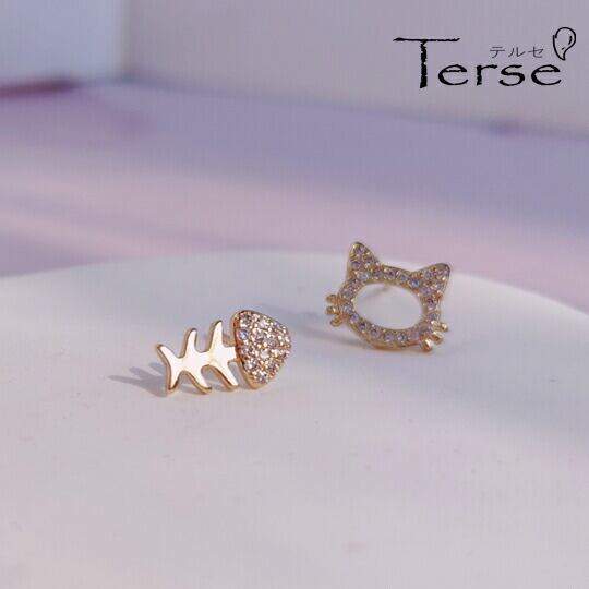 ■存在感を示すゴールドのネコちゃんとお魚さん!Terseのアシンメトリーピアスでおしゃれを楽しんでください♪