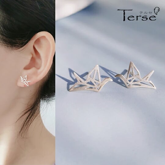 縁起の良い鶴で運気をアップ!Terseの千折り鶴ピアスでおしゃれを楽しんでください♪