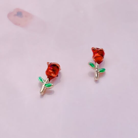 Terse ミニレッド薔薇 モチーフ ピアス 日常使いしやすい上品なデザインはギフトにもぴったり 小さいサイズ顔まわりを華やかに演出します どんなスタイルにも合わせやすく、ギフト、デイリー、お出かけなど、マルチなシーンで活躍 赤い バラ 14KGP sp0209a