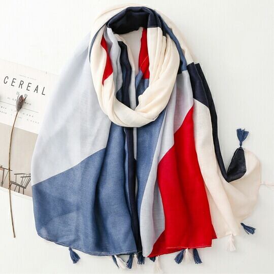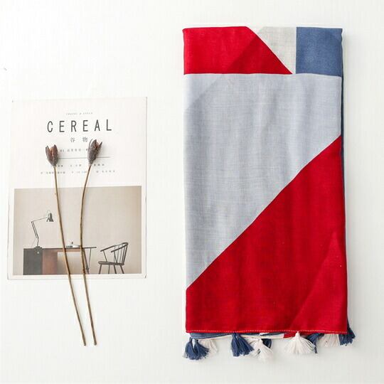 幾何学柄の大判ストール シンプルなコーディネートのスパイス役にぴったりなインパクトのあるカラーリング 大判サイズなのでアレンジの幅が広い 薄めのストールは首元をふんわりと優しく温めつつ 肌寒くなったら首に巻く 体温調整最適 ma0324a