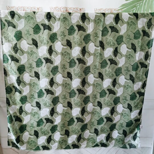 銀杏の葉が美しくデザインされた大判プリントストール さまざまな異なるグリーンの色合いが爽やかな色を演出 秋の装いにぴったりのアイテムで シンプルなコーディネートに華やかさをプラスし、秋のファッションを一層引き立てます イチョウのリーフ 秋 2026秋 オータム グリーン 森 ナチュラル 大判 プリント イチョウ 銀杏 葉 リーフ ストール マフラー スカーフ アウター 装い コーディネート 華やか ギフト プレゼント 上品 大人可愛い 温かみ ma0361agr
