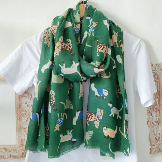 ユニークなスタイルを楽しむ!Terse手書き風猫柄の大判ストール!