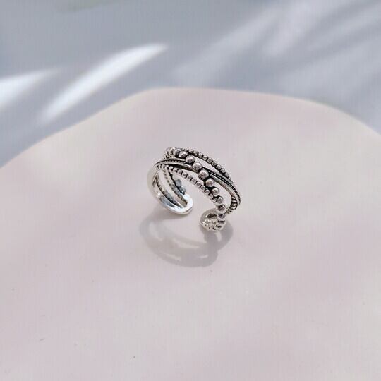 存在感抜群の「Terse 雰囲気抜群なクロスデザインのころんと丸いボールをつなげたリング」で、手元に華やかさをプラスしませんか?このリングは、特徴的なクロスデザインと、シルバーの小さな粒が光を集めることで、アンティーク調の魅力を放つアイテムです。ころんとした丸いボールが絶妙に組み合わされており、一目で視線を引くこと間違いありません。