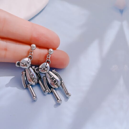 Terse手足が動くデザインが心を癒してくれるしるばーテディベアモチーフピアス 遊びゴコロ 大人可愛い かわいくて乙女に人気の子熊ぬいぐるみモチーフ 可愛いお目立ちピアスに仕上げました ファニーで遊びゴコロたっぷりなくまちゃんモチーフ 大人 可愛い ファッション sa0199a