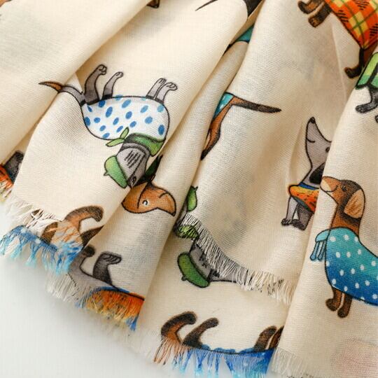 品格を感じさせる愛らしい姿が特徴のダックスフンド大判プリントストール 手描かれたシルエットとキュートな表情が魅力たっぷりの優しいイメージのデザイン 犬好きにはたまらない 巻き出かけるだけで気分もノリノリ 道行く人の視線も釘付け間違いなしです ma0326a