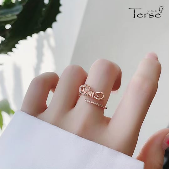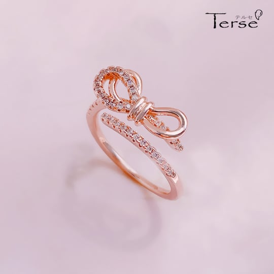 Terse 記憶に刻むため指に結んだ細い糸をモチーフにした指輪 それは大切な絆を象徴 燦然ときらめくCZダイヤモンドが、フェミニンなデザインを華麗に飾るリング 開口 サイズフリー お洒落 高級感 リボン 可愛い キュービックジルコニア rs0191apg
