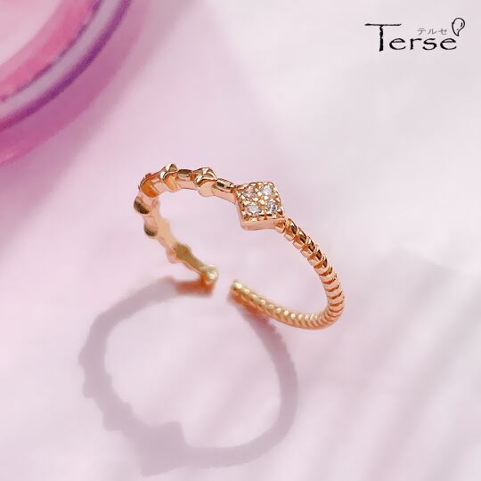 Terse 華奢で上品な質感を大切にしたツイストアームリング ひねりを加えた細身のアームはクラシカルでモダンな印象 ミル打ちデザインCZダイヤ4石でシンプルに楽しむも良し、重ね付けでアレンジを楽しむも良し、毎日のコーディネートをさりげなく格上げしてくれる rs0344ag