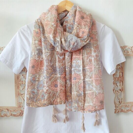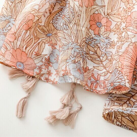 繊細なフラワー柄が美しいプリントストール はっきりとした輪郭でそれぞれの個性を主張する花々 柔らかいカラーのピンクは女子力アップ さらりと柔らかく透け感があり 薄手の生地ですが首元に巻くとボリュームもあり夏の冷房対策にも 四季 “冷え”対策も ma0315a