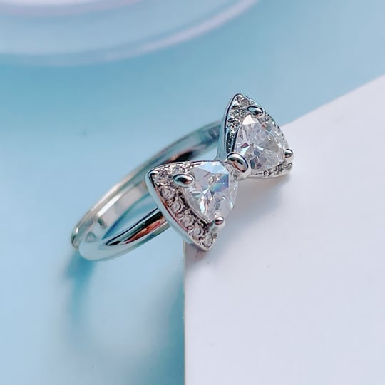 Terse S925 リング 指輪 サイズフリー レディース シルバー CZダイヤ リボン 結びつき 縁 結婚運/恋愛運アップ きらきら 華やか 大人可愛い 甘すぎない お出かけ パーティー 誕生日 デート 普段使い プレゼント キュービックジルコニア rs0096as