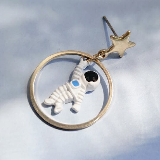 Terse 宇宙系売れてます!かわいい宇宙飛行士さんと水色天体のアシンメトリーピアス 1ペア レディース コスモ 星 スター 地球 アース リング 輪 チェーン 普段使い お出かけ パーティー 食事会 女子会 イベント デート プレゼント ギフト se0257a