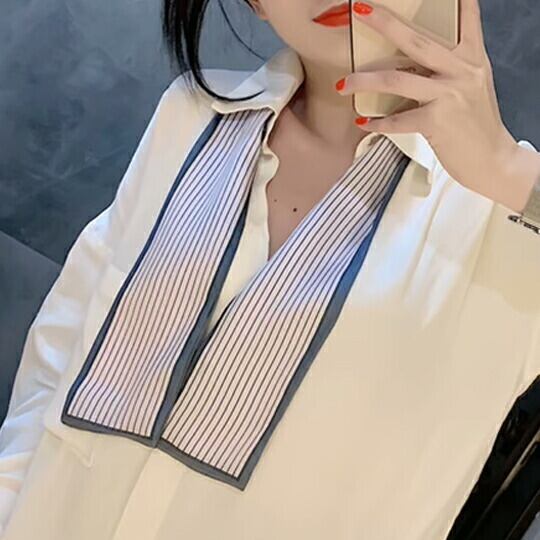 この「Terse シンプルなデザインが使い勝手の良い細いスカーフ」は、エレガントなレジメンタル調の配色ラインが特徴のアイテムです。柔らかなポリエステル素材で作られており、ネック周りはもちろん、洋服やバッグのアクセント、さらにはヘアアレンジにも最適です!サッとキュッと結ぶだけで、あなただけのスタイルを簡単に楽しむことができます。