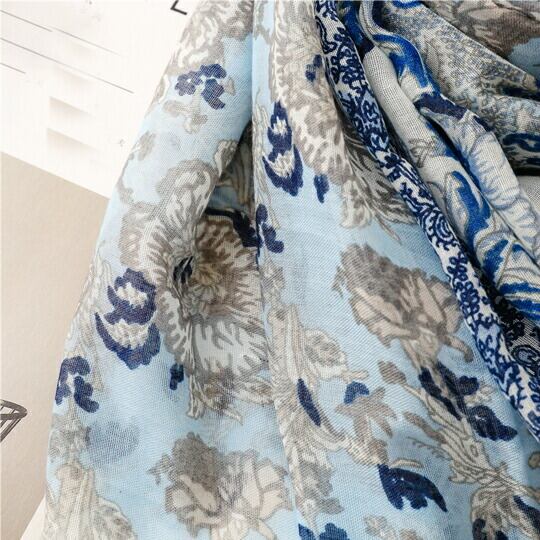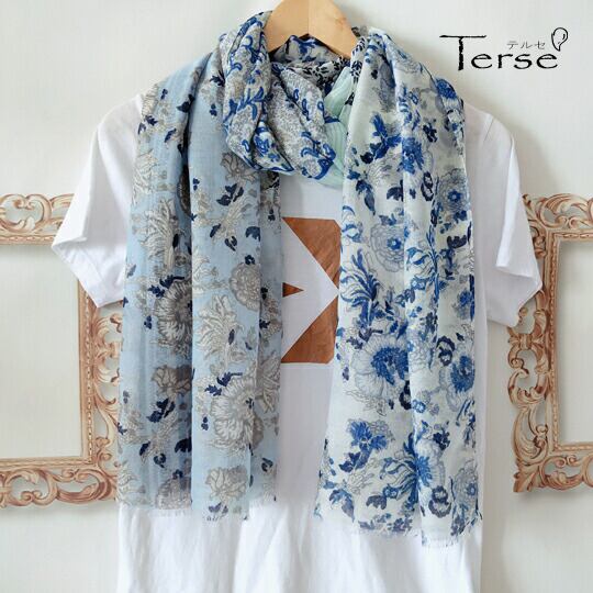 洗練された装いを演出する「Terse 目を惹く爽やかなブルー生地に鮮やかな花柄がいちだんと映える大判ストール」。このストールは、巻き方によって柄の出方が変わるため、さまざまな表情を楽しむことができます。程よい透明感があり、これからの季節にぴったりなアイテムです。さりげない個性が存在感を放ち、日差しからお肌を守るUVカット機能を備えています。