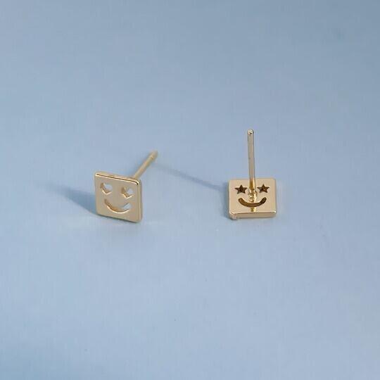 Terse スクエアスマイル POP シンプルピアス センスオブユーモア ハッピーピアス 小さいながら存在感 気分が上がる 笑顔 ニコちゃん 程よい存在感 ゴールド レディース 普段使い お出かけ ギフト プレゼント se0306ag
