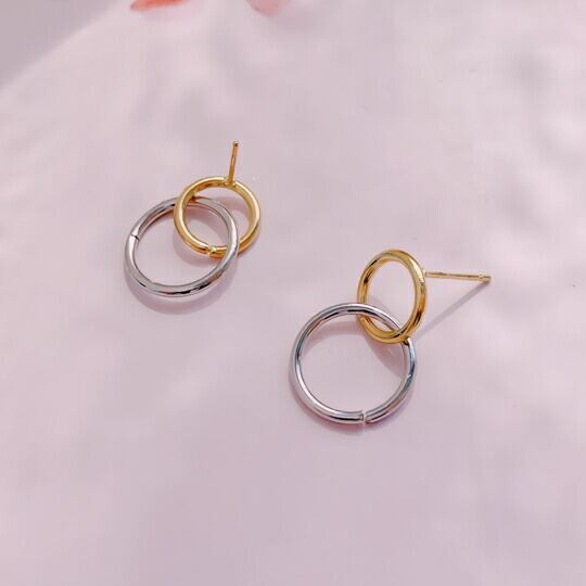 ■シンプルでありながら存在感抜群!Terse モデン シルバーとゴールドのダブルフープピアス 1ペア