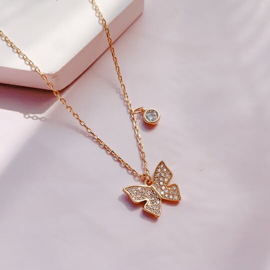 Terse バタフライ CZダイヤ ペンダント ネックレス 蝶が舞うデザイン 美 成長のシンボル 生まれ変わり 美しさを保つお守り ラッキーモチーフ レディース 大人可愛い 普段使い お出かけ ギフト プレゼント sn0309a