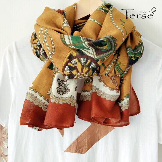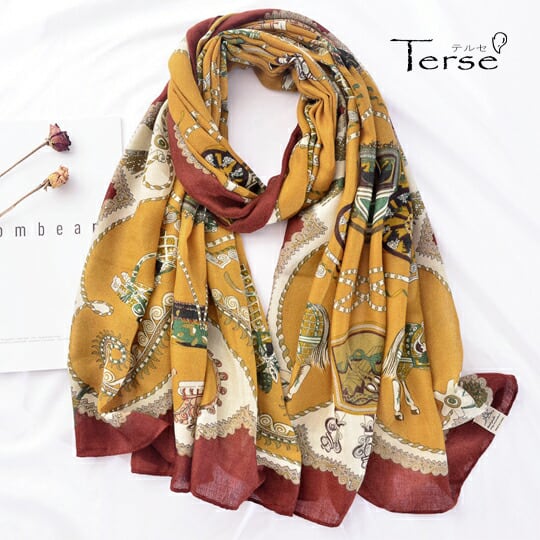 ■中世ヨーロッパの魅力を感じさせる華やかな馬車プリント!Terse 馬柄プリントストール