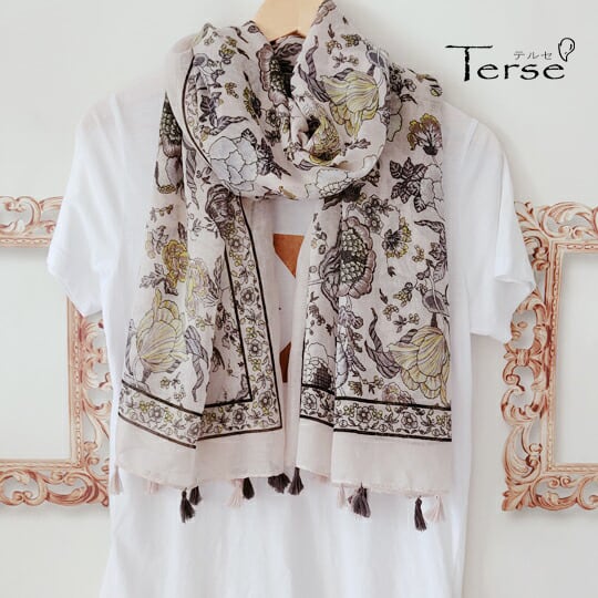 この「Terse シンプルなカラーリングを使用した手描き 大判ストール」は、優雅なフラワープリントが特徴のエレガントなアイテムです!秋冬のコーディネートを華やかに引き立て、アートを纏う喜びを感じることができます。肌触りの良い大判サイズは、さまざまなスタイルに合わせやすく、シーズンを問わずお楽しみいただけます。特別な日のお出かけにも、日常使いにもピッタリな一枚です♪