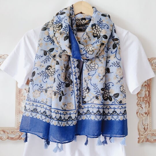 「ふんわり爽やかな手描きフラワープリントがポイントの上品なストール」は、華やかな手描きフラワーデザインが魅力のアイテムです☆シンプルなお洋服に加えるだけで、スタイリングを一層引き立て、特別な日や普段使いに最適な上品さを演出します。UVカット機能も備えているため、これからの季節にぴったりのアイテムです。