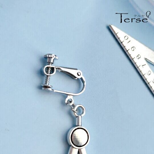 Terse 面白三角定規&コンパスモチーフ ノンホール 1ペア レディース メンズ 数学 算数 理系 幾何学 シルバー 銀 かわいい 楽しい 人気 お出かけ パーティー デート 普段使い プレゼント 遊び心 円(縁)を描く スーパーコンパス【イヤリング】 se0098e