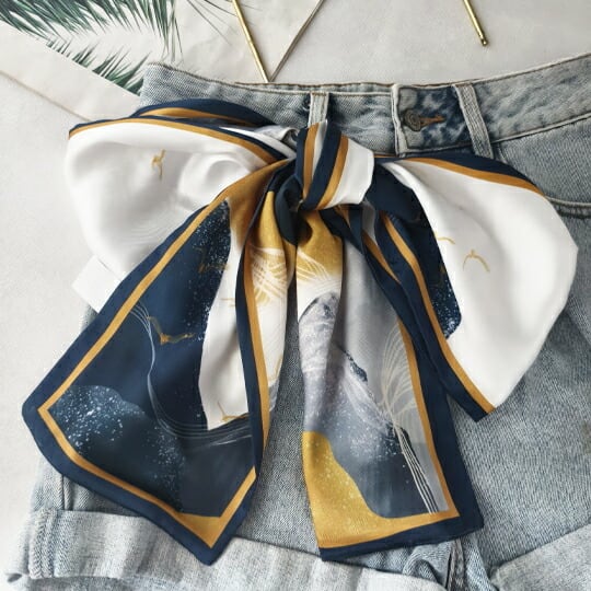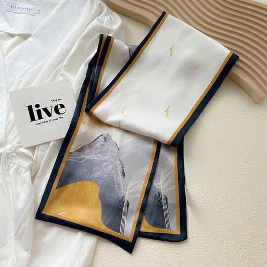 「水彩画 山水模様 白基調 細いスカーフ」は、大人の女性にぴったりの上品なアイテムです☆シンプルでありながらも、洗練されたデザインが魅力的で、日常の装いに華やかさを加えることができます!落ち着いた配色が特徴で、どんなスタイルにも合わせやすく、首元やヘアアレンジ、バッグのアクセントとして活躍します。