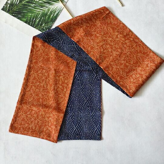「 ネイビー色の幾何学模様とオレンジ色のボタニカル柄のリバーシブルスカーフ」は、シンプルな服装に華やかさを添える魅力的なアイテムです!細身のデザインが特徴のこのスカーフは、クールカラーとウォームカラーのコントラストが美しく、さまざまなスタイルに合わせてお楽しみいただけます。幾何学模様とボタニカル柄の両面が楽しめるリバーシブル仕様なので、コーディネートに合わせて気軽に使い分けが可能です。このスカーフを身にまとえば、日常使いから特別な occasion まで、あなたのスタイルに新たな息吹をもたらしてくれることでしょう!お洒落の幅を広げるこの逸品を、ぜひあなたのファッションアイテムに加えてみませんか?