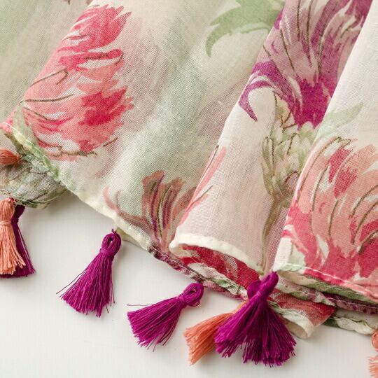画風フラワー エレガント 大判ストール 目を引くプリント 柔らかく軽量素材 春らしい軽やか さっと合わせる ワンランク上のコーデ 薄手 タッセル付き 春 おでかけ ギフト プレゼント レディース ストール スカーフ ma0228a