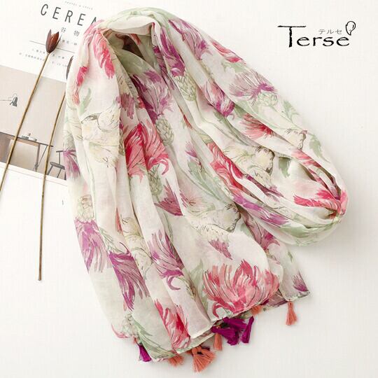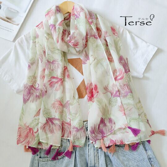大人の女性にぴったりな洗練されたエレガンス!Terseのフラワーモチーフプリントストールで、春らしい軽やかさをコーディネートに加えましょう♪