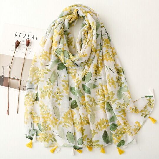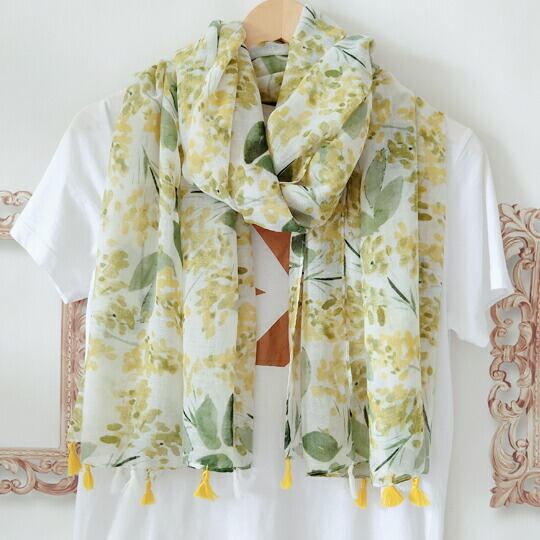 ミモザ柄 水彩タッチ ふわふわ繊細な黄色い花 大判ストール ギンヨウアカシア 花言葉 優雅 繁栄 程よい透け感 春から秋まで長く活躍 春 夏 秋 おでかけ ギフト プレゼント レディース ストール スカーフ ma0249a