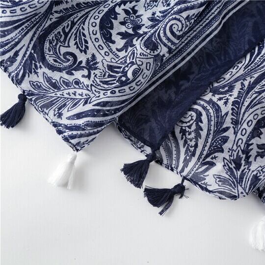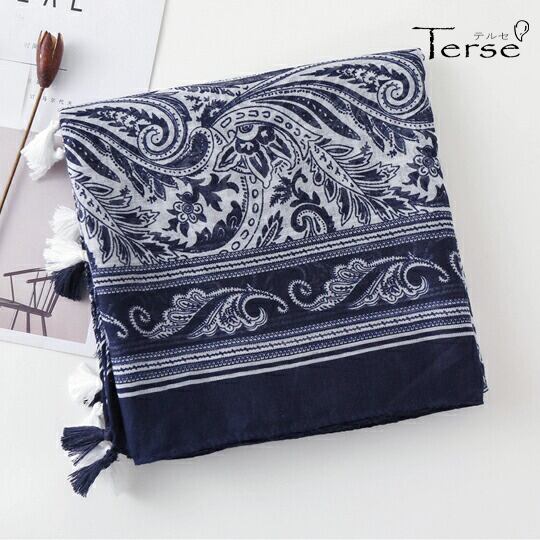 ペイズリー ディテールまで美しい プリントストール 秋冬らしいシックカラー ネイビー タッセル付き 薄手 アレンジ自在 くるっと巻く さらりと羽織る エレガント UVカット ロング 秋冬 おでかけ ギフト プレゼント レディース ストール スカーフ ma0195a