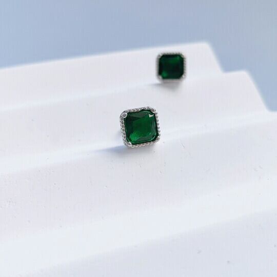 「Terse 四本爪の枠にスクエアカット エメラルドグリーン CZダイヤスタッドピアス」は、美しいエメラルドグリーンのCZダイヤが四角い形でセッティングされており、洗練されたシンプルなデザインが特徴のアイテムです☆ オフィスでも使いやすい上品サイズで、日常のスタイルに華やかさをプラスします!特別な日やカジュアルなデートにもぴったりで、あなたの魅力を引き立てること間違いありません。