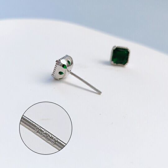 ■シンプルかつ上品な存在感を放つ!Terse 四本爪の枠にスクエアカット エメラルドグリーン CZダイヤスタッドピアス 1ペア