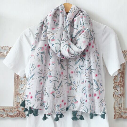 水彩タッチで描かれたかわいいフラワー模様の大判ストール どこか外国のお庭のような雰囲気もある、やさしいイメージのイラストが魅力的なデザイン 爽やかな季節に合う柔らかく薄手のストール 可憐な花柄がシンプルなコーデを一気に華やかにアップデート ma0323a