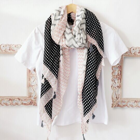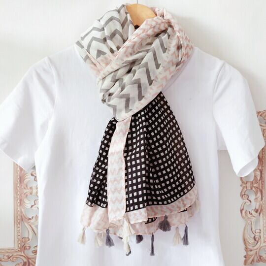 爽やかな色合いと独特な幾何学模様が特徴の大判ストール 柔らかなピンクとグレーの色調が組み合わさり、どんな服装にも簡単に合わせることができます シックな幾何学模様が採用されており、それぞれのセクションで異なるパターンが楽しめます 波線 チェック柄ma0347a