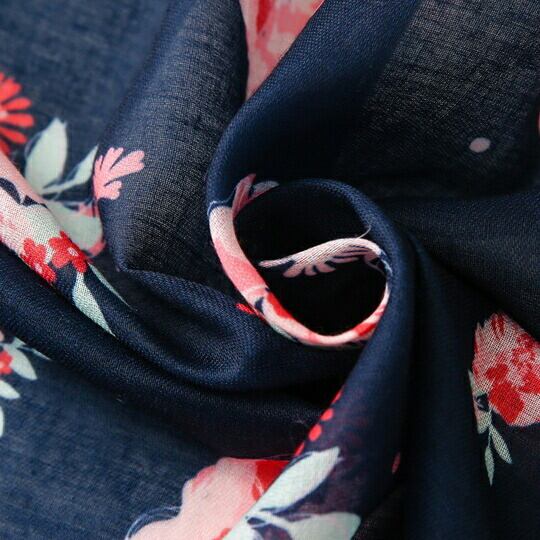 花柄プチストール ネイビー×ピンクフラワー シックな色合い 大人の女性にぴったり なめらかな肌ざわり 高級感 2月誕生花 春 夏 秋 日焼け止め UVカット レディース おでかけ ギフト プレゼント ストール スカーフ ma0180a