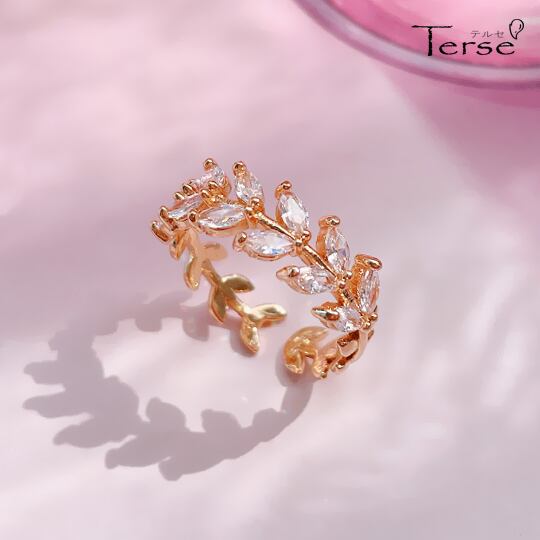 「Terse 月桂樹の葉をモチーフにしたCZダイヤフォークリング」は、永遠の美しさを象徴する特別なアクセサリーです!月桂樹の葉の透かしデザインは、まるでレースのような繊細さを持ち、大人の女性のオシャレ感を引き立てます。単独で着用しても、その存在感を忘れさせない上品さを演出。さらに、クラシックなシルエットのリングとの重ねづけで、より一層の魅力を楽しむことができます!