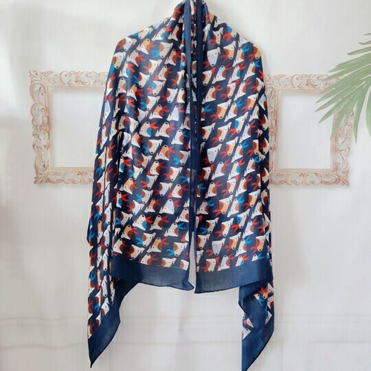 「イギリス貴族のスポーツとして愛好されたブルテリア柄の大判ストール」は、犬好きや愛犬家の方々にぴったりな特別なアイテムです!ネイビーの生地に映えるブルテリア柄は、子犬の目と顔にハッピーな表情を描き出し、そのユニークなデザインが注目を集めること間違いなしです。このストールは、カジュアルなお出かけや散歩、さらには紫外線対策としても活躍します。愛犬とのお散歩やお遊び時に、ちょっとした遊び心を加えて、楽しさを倍増させましょう。