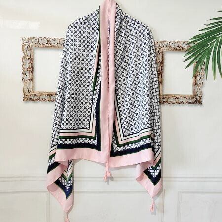 幾何学 模様 ピンク 和風 スカーフ マフラー 大きい 春 夏 薄手 黒 ストール ショール 大判 ロング UVカット 花柄 フリンジ しっかりとした生地で、少し光沢もあり、柔らかく、肌触りがいい 夏から秋にかけて ma0094a