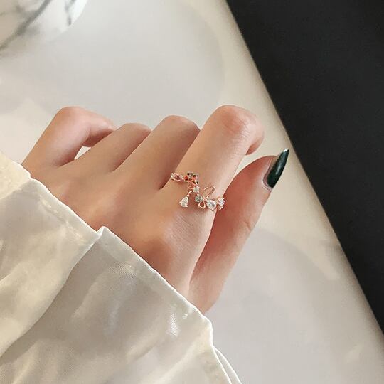 Terse ジルコニアのチャームがポイント☆キラキラおしゃれリング レディース サイズフリー 指輪 フラワー リボン 蝶 バタフライ お出かけ デート お呼ばれ パーティー 二次会 女子会 食事会 普段使い プレゼント rs0185apg