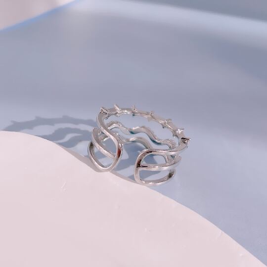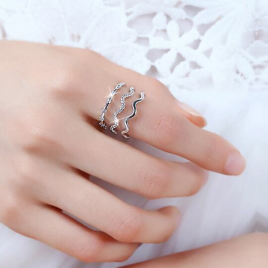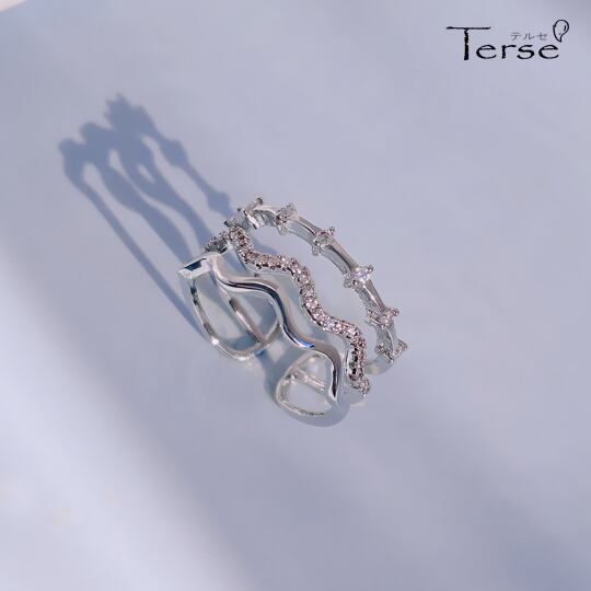 Terse スタイリッシュなシルバー☆重ね付けをしているような、ジルコニアを散りばめた3連風リング レディース 指輪 フォークリング 微調整可 程よいボリューム感 お出かけ イベント デート 結婚式 二次会 お呼ばれ パーティー 普段使い プレゼントrs0207as
