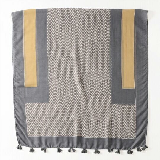 相性抜群の中間色幾何学模様の大判ストール ベージュとグレー色合わせることで洗練された大人な雰囲気を演出することができます 柔らかい生地が、上品で華やかな印象です ドレススタイルの羽織りとしてピッタリなアイテム 薄手で程よい透け感 ma0270a