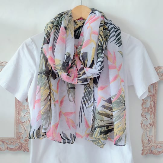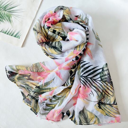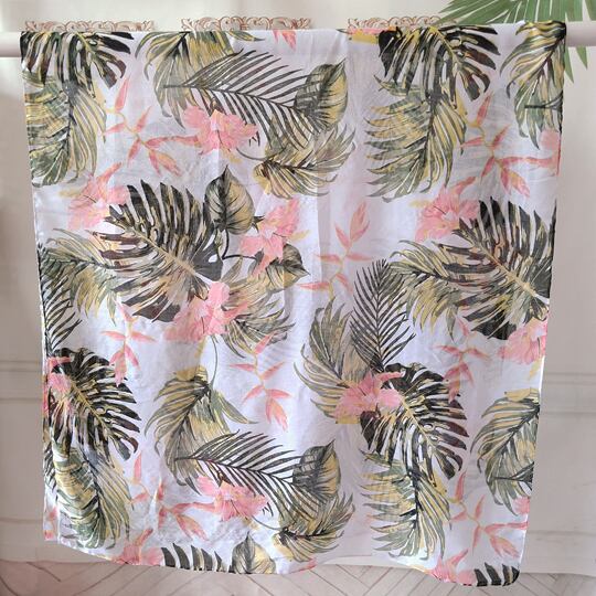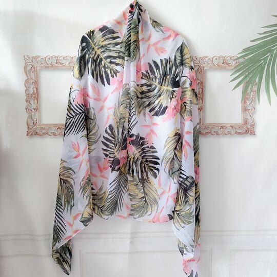 上品さ漂う ハイビスカス柄 薄手 大判 ストール アロハシャツのようなリゾート感のあるプリントが夏の気分を盛り上げてくれるスカーフ お首周りにふわりと軽く巻くだけで、お肌の色も一段階明るく見せて 7月花 ハワイアン