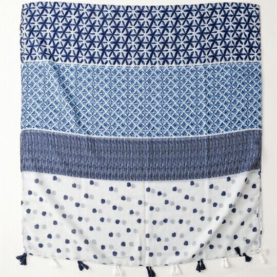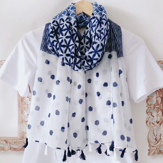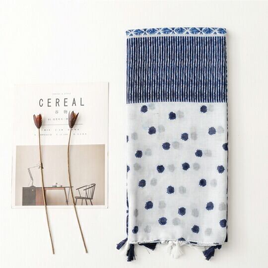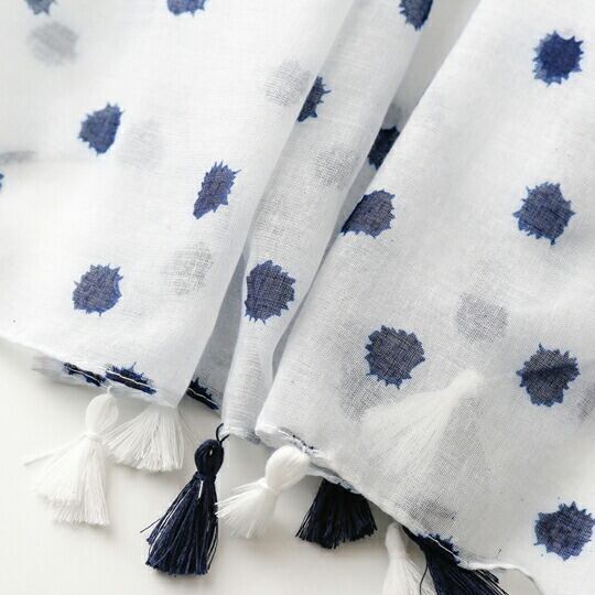 涼しげな印象を感じさせる水彩画ような小さなドットがプリントされたストール カジュアルな印象でお使いいただけます さっと巻くだけでスタイリングのポイントになる便利な大判薄手ストール 透け感のあるふわりと軽い素材感 夏にぴったり ホワイト ブルー ma0297a