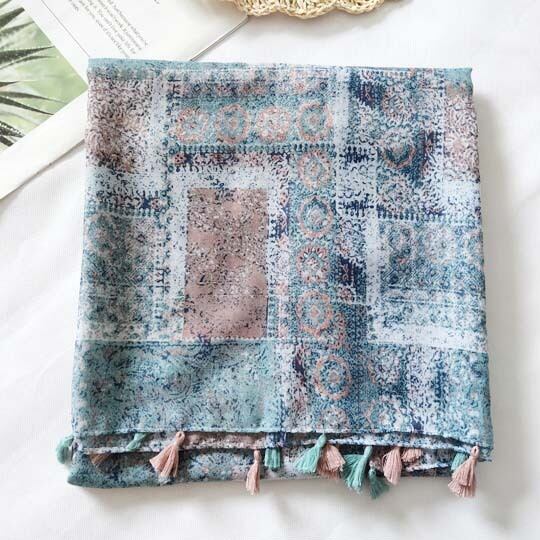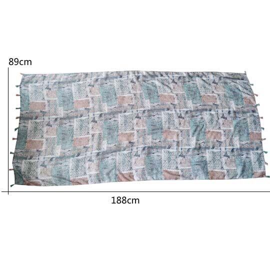 シンプルなのに印象的、パッチワークデザインのストール!「さまざまなパターンの柄をバランスよく組み合わせたパッチワークデザインのストール」で、あなたのスタイルに個性的なアクセントを加えてみませんか?