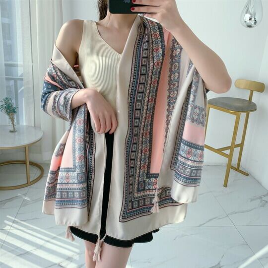 「ピンクとブルーのストライプ模様ストール」は、身につけるだけで女性のファッションをランクアップさせてくれる特別なアイテムです!鮮やかなストライプ模様が、コーディネートに華やかさをプラスし、毎日のスタイルを一層引き立てます。このストールは大判サイズで、さっと羽織るだけでケープとしても楽しめるため、様々な用途で活躍すること間違いなしです。薄手のタイプで軽やかに仕上げられており、冷房対策や日焼け止めとしても役立ちます。お出かけやパーティーシーンでもお洒落に決まるアイテムで、持ち運びもしやすく、いつでも手軽に使えるのが魅力です。このストールをまとって、洗練されたエレガンスを楽しんでください!