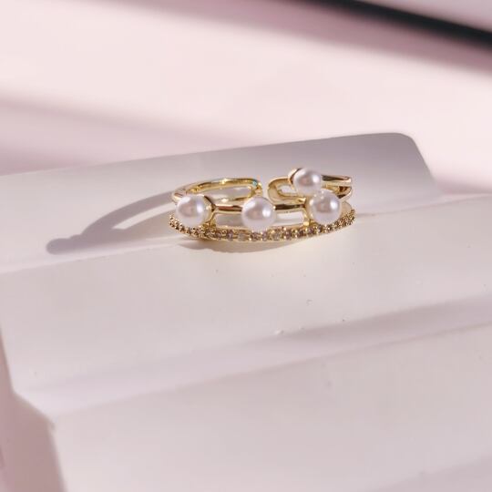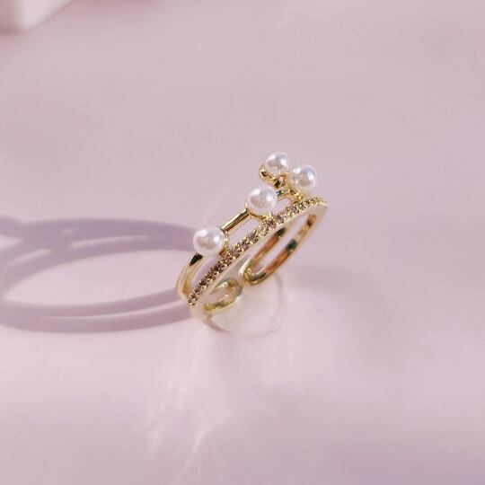 Terse お手元を洒落感たっぷりに彩る 不規則な位置に、大小不規則なフェックパールをあしらった、都会的でお洒落なリング シンプルなスタイリングにさっと着けていただけば、一気に雰囲気が華やぎます ゴールド色アームに、パールをアトランダムにセットしました rs0343a