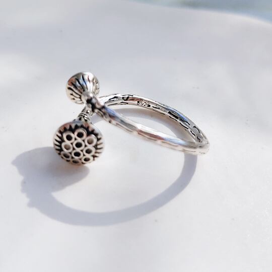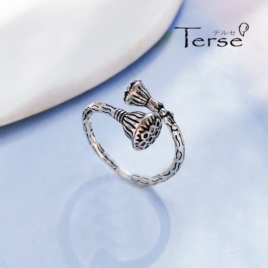 Terse かわいいらしい 蓮の実 ロータス指輪 蓮の実 モチーフしたデザインフォークリング サイズフリー ユニクス 蓮の花の花言葉【清らかな心】【神聖】 7月誕生花 お出かけ 普段使い プレゼント ハス 美肌 疲労回復 S925 シルバー925 rs0203a