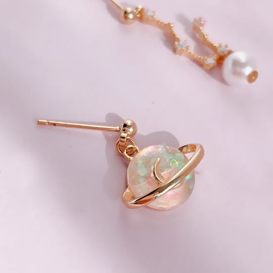 ロマンチックな宇宙を耳元に!Leafyの「北斗七星&土星に三日月を閉じ込めたコスモピアス」で、あなたのスタイルに幻想的な輝きを添えてみませんか?