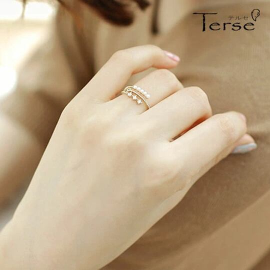 ■高級感あふれる煌きで指先を彩るリング!Terse 高級感のあるゴールドカラー☆煌くジルコニアとパールのおしゃれリング