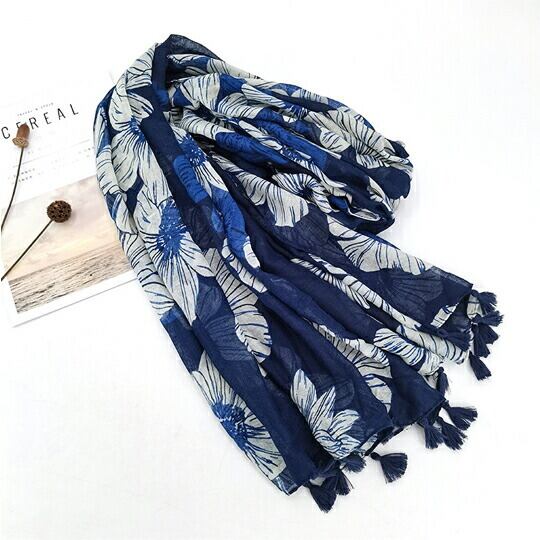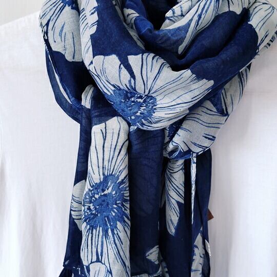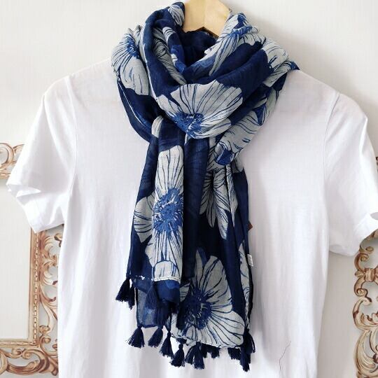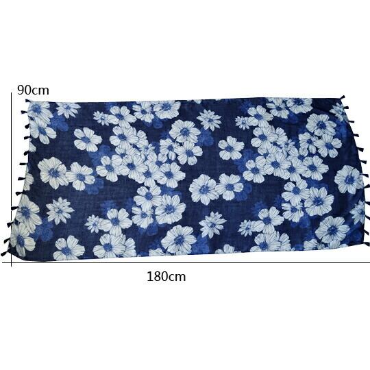 シフォンフラワー大判ストール ふんわりとしたシフォンフラワーの柄は、やわらかく、やさしい印象に さらりとやわらかく透け感があり、とっても軽やかです 薄手の生地ですが、首元に巻くとボリュームもあり、夏の冷房対策 春秋のお出かけにぴったりma0181a